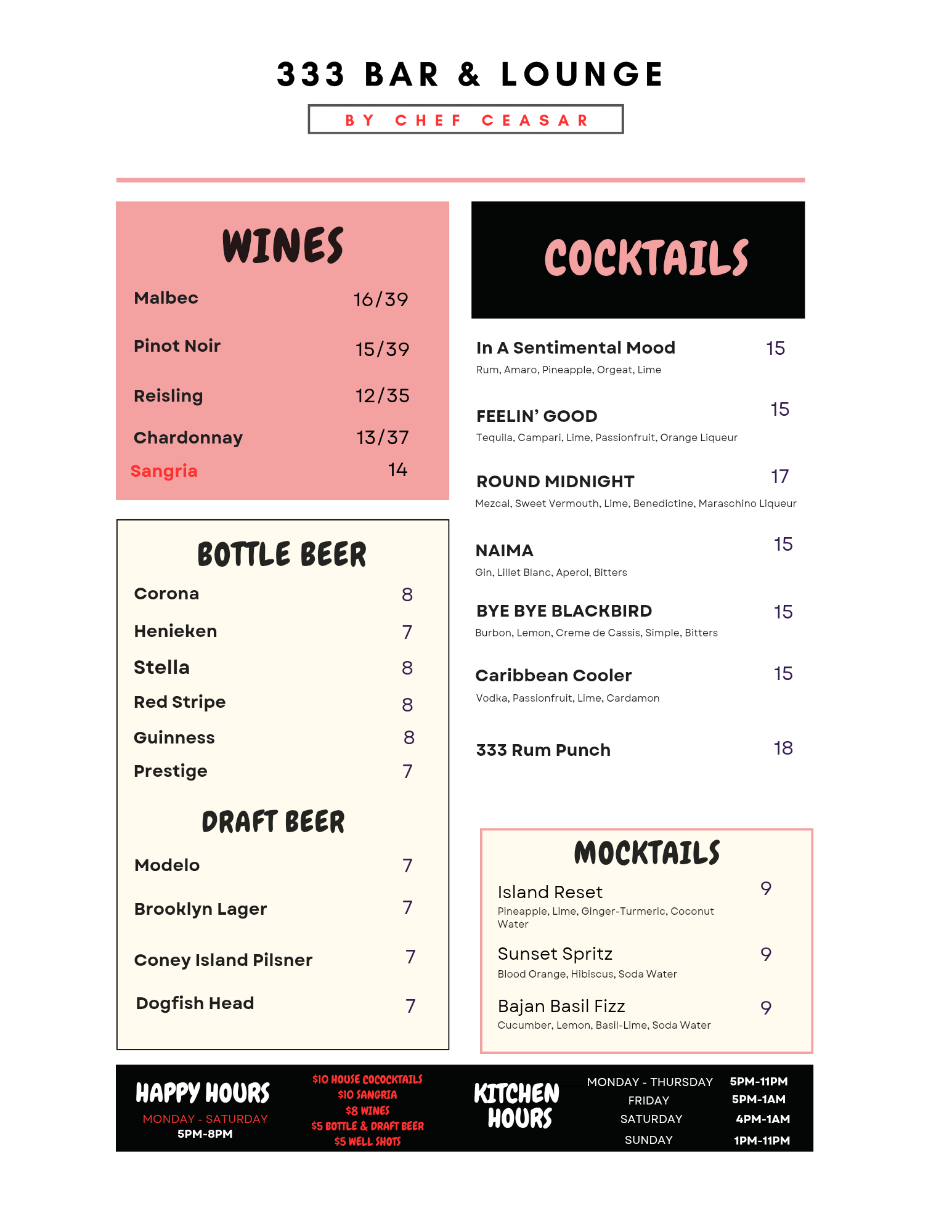– Cocktail DRINK Menu –